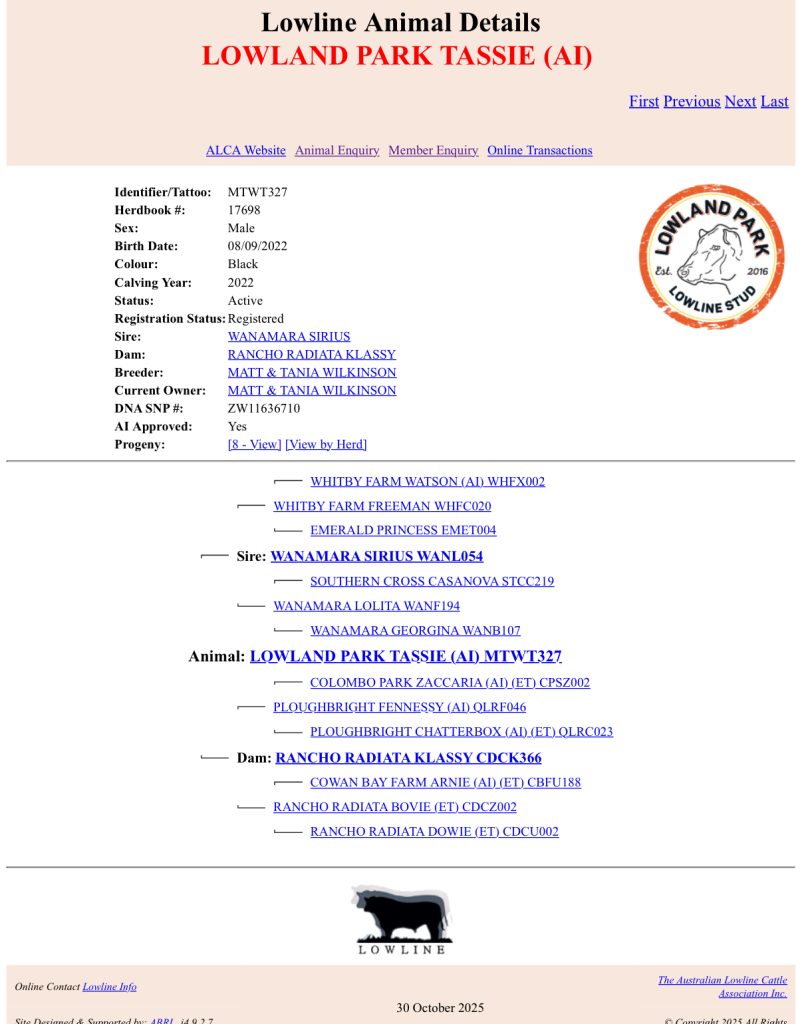 Registered Lowline bulls are all DNAverified to both parents guaranteeing assurance that the bulls are 100% lowline that will deliver the qualities expected from Lowline genetics.